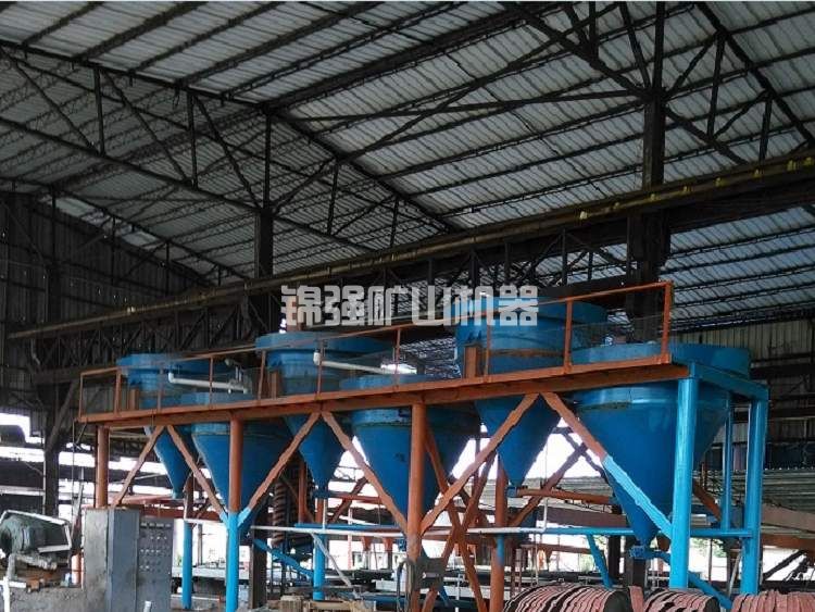 在液面中心設(shè)置給礦圓筒,圓筒底緣沒入液面以下若干深度。礦漿沿切線方向向給入中心圓筒,經(jīng)緩沖后由底緣流出。流出的礦漿呈放射狀向周邊溢流堰流出。在這一過程中,沉降速度大于液流上升分速度的粗顆粒將沉在槽內(nèi),并經(jīng)底部沉砂排出。細顆粒隨表層礦漿進到溢流槽內(nèi)。分泥斗給礦粒度一般小于2mm。分級粒度為75或更細些。